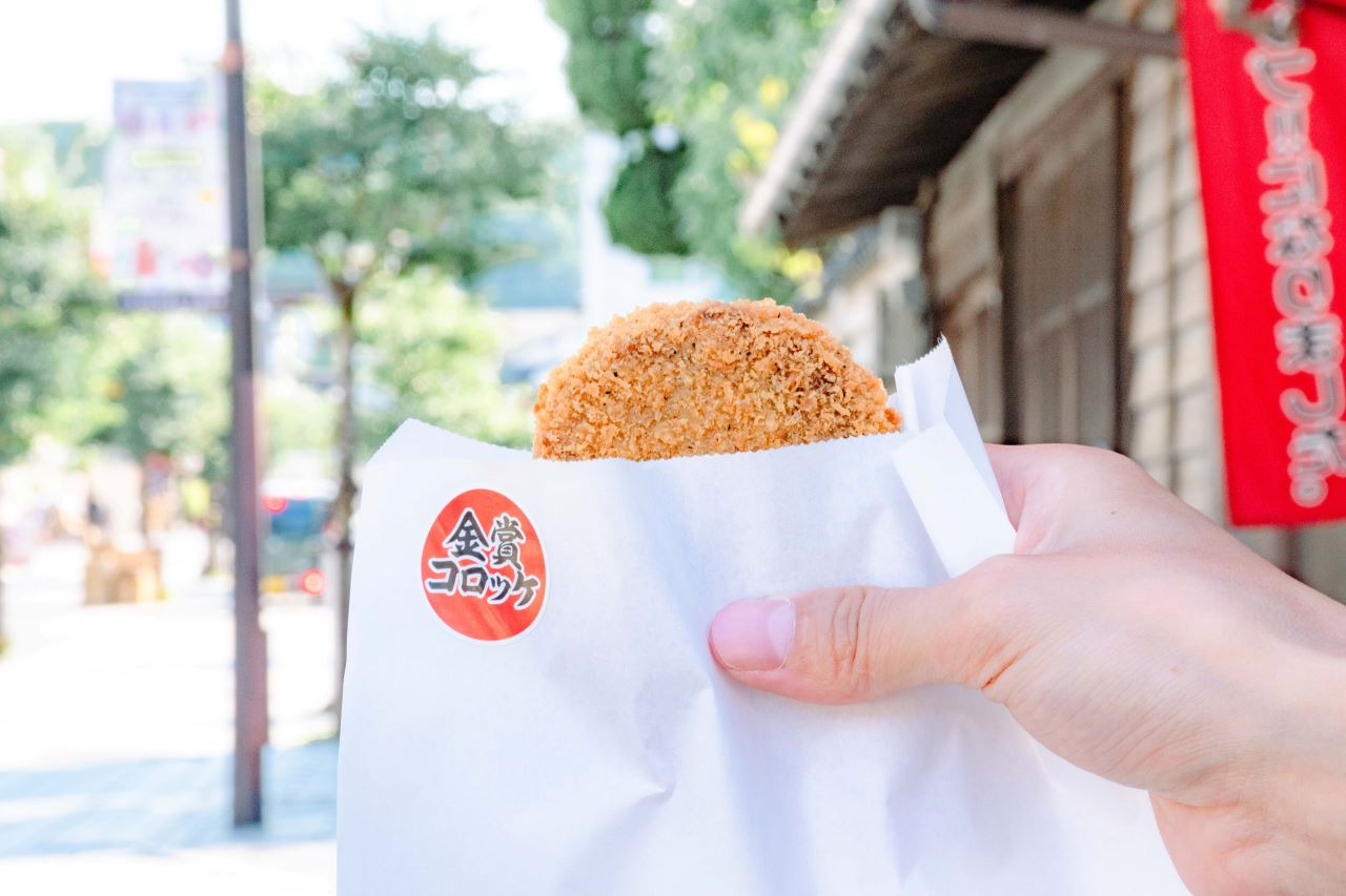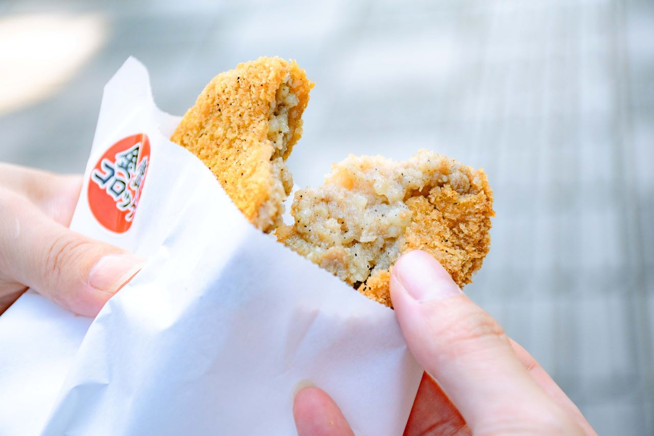 금상 고로케(200엔)는 감자의 단맛과 톡 쏘는 후추 향신료가 절묘하게 어울리는 맛!!