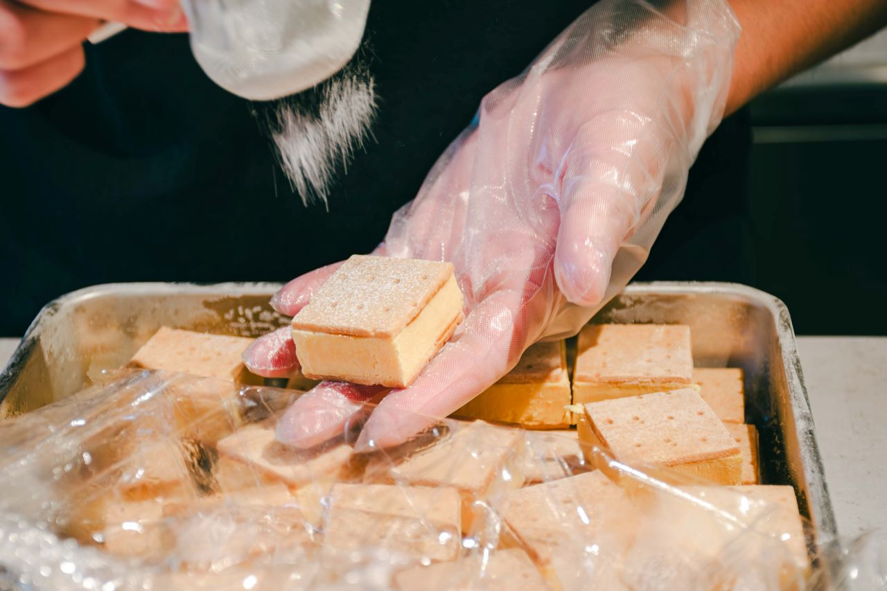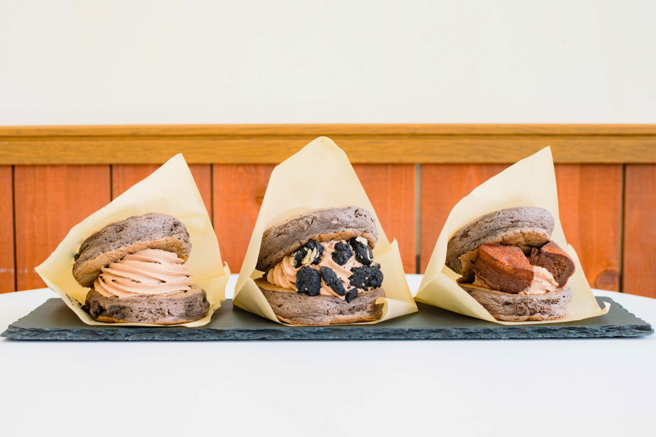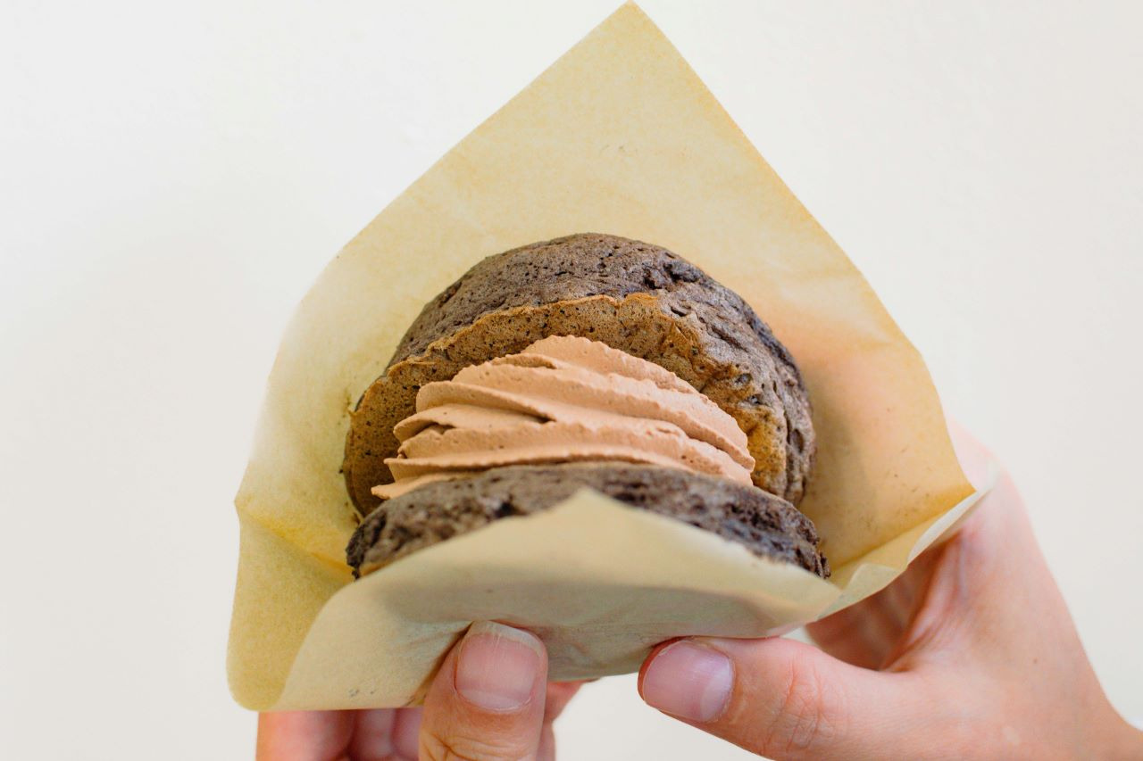 가볍고 가벼운 식감의 팬케이크에 가벼운 크림을 샌드한 것으로, 도라야키 감각으로 즐길 수 있습니다. 마치 버거처럼 간편하게 먹을 수 있다는게 특징!!!