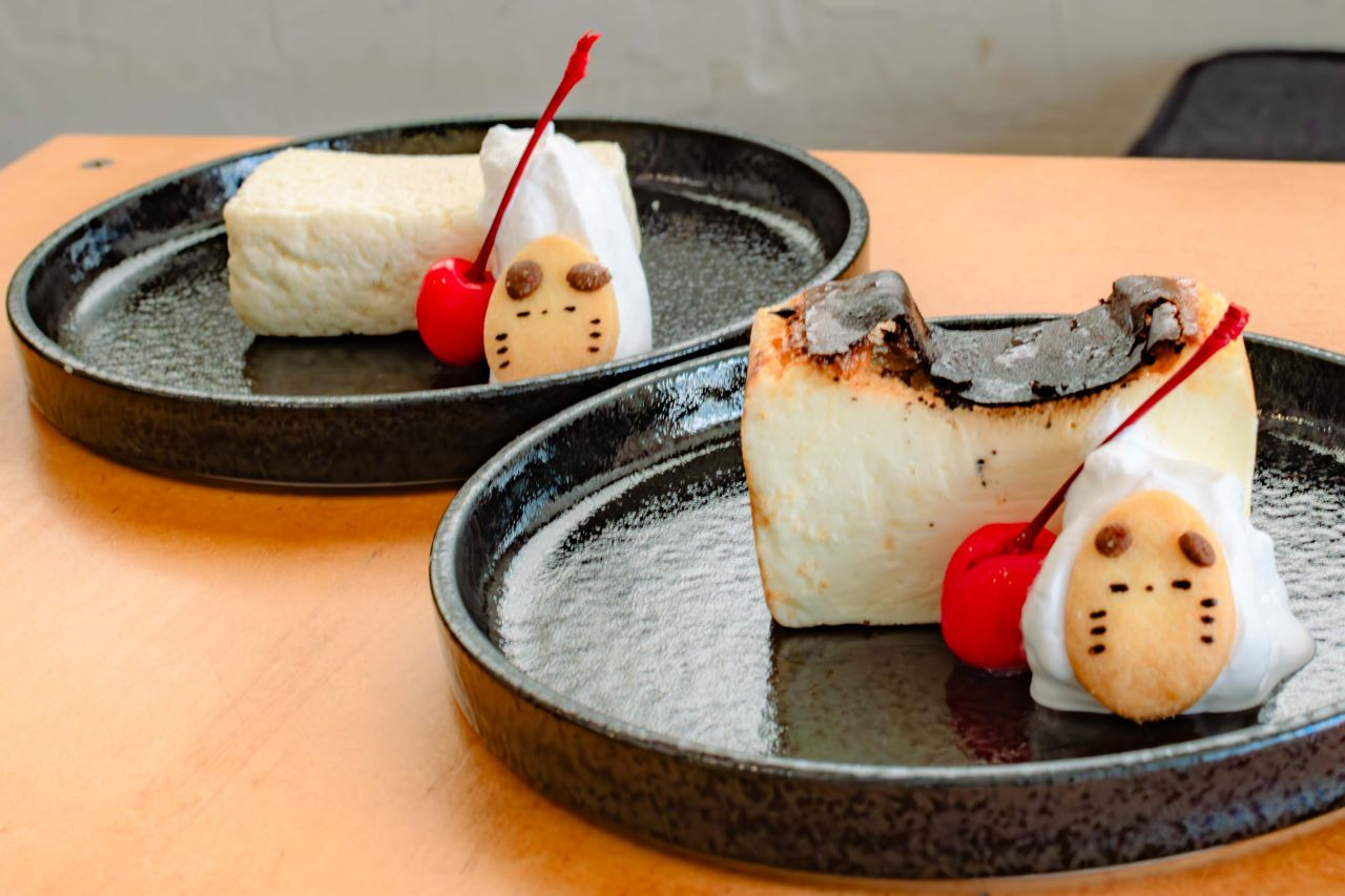 흰색은 부드러운 식감을 고집하는 베이크드 치즈 케이크, 검은색은 탄 것이 특징인 바스크 치즈 케이크로, 엄청난!! 식감을 자랑하는데요. 모두 간판 캐릭터인 츄타의 쿠키가 곁들여져 있어 부드러운 치즈 케이크와 함께 먹으면 새로운 식감이 더해지니 참고!!!