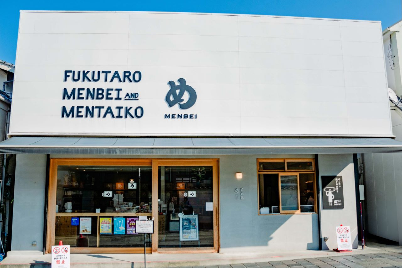 다자이후텐만궁의 참배길을 조금 벗어난 곳에 '메' 로고가 눈길을 끄는 '후쿠타로 다자이후점'이 있습니다.
