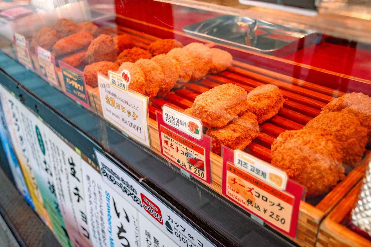 가장 인기 있는 '금상 고로케' 이외에도 후쿠오카만의 '현지 명태 고로케'와 고기가 가득한 '멘치 이긴다' 등 메뉴가 다양한데요. 특히 주말에는 더 많은 종류의 고로케가 등장한다고 하니 고르는 재미를 위해서는 주말 방문?