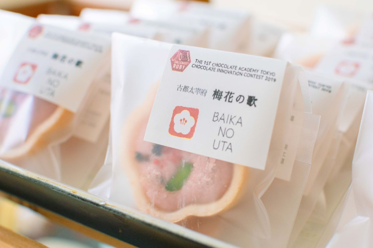 다자이후점에서는 루비초코를 사용한 오리지널 초콜릿 과자, '매화의 노래'(237엔)도 판매 중입니다. 외형도 사이즈도 사랑스럽고, 다자이후의 새로운 기념품으로 인기를 끌 것 같은 예감!