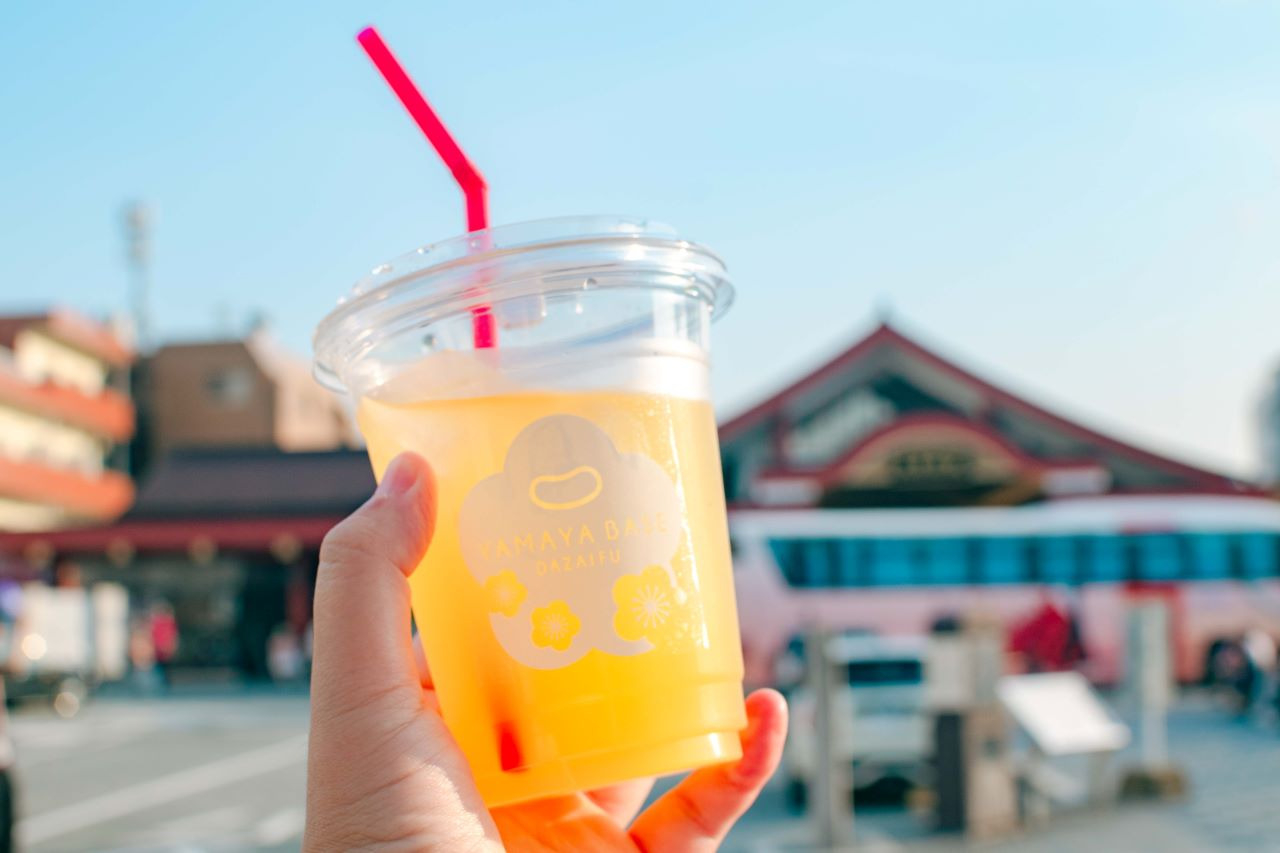 다자이후에 오면 역시 매실 주스는 빠질 수 없습니다~ 큰 매실이 통째로 1개 들어 있어 매실 본연의 풍미를 제대로 느낄 수 있는데요. 새콤달콤하고 깔끔한 맛은 입을 재충전하고 싶을 때 딱!! 초깔끔!!