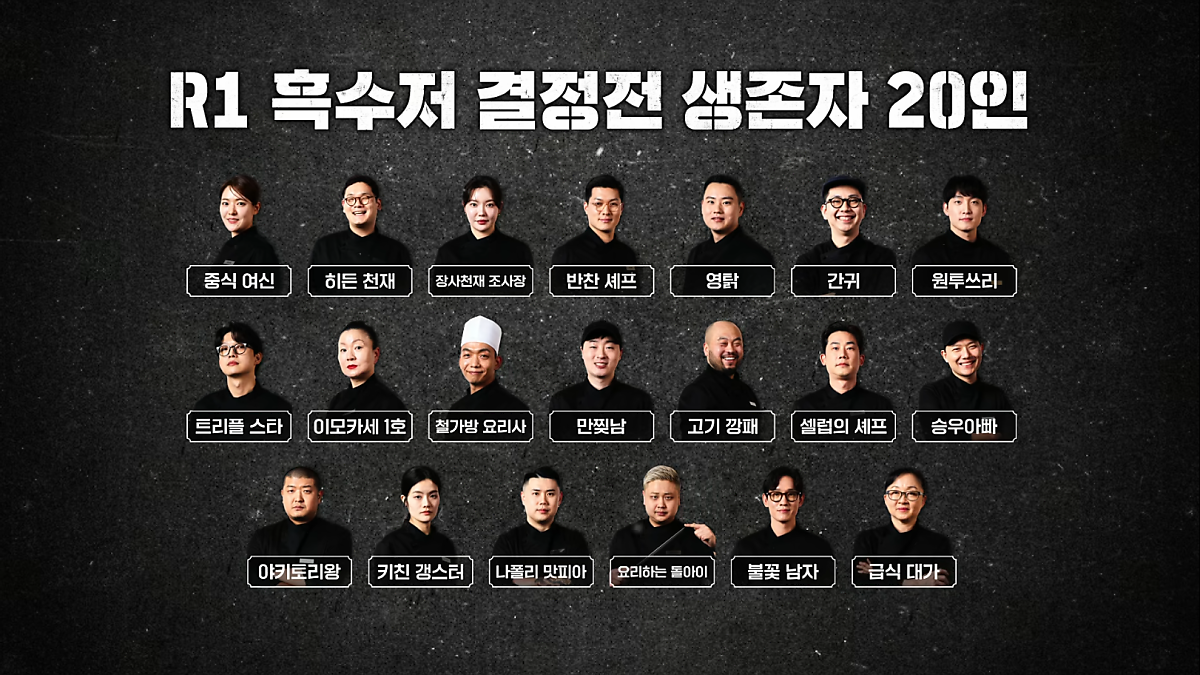 여기서 합격을 받은 참가자는 총 16명! 추가 생존자는 보류 등급에서 정해졌으며 기사회생한 흑수저는 '나폴리 맛피아', '요리하는 돌아이', '불꽃 남자', '급식 대가'  4명으로 총 20인의 흑수저 팀이 완성!!~