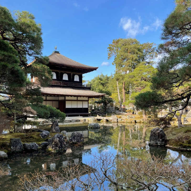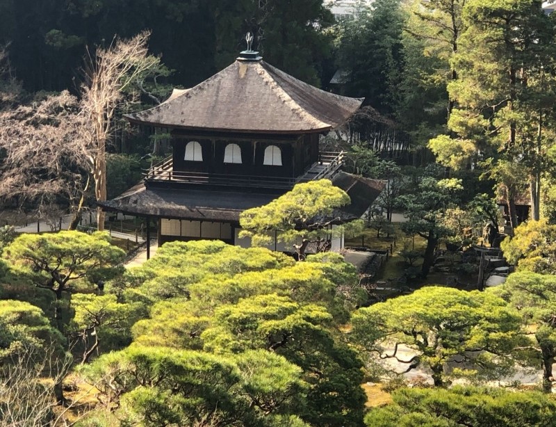 원래는 무로마치 막부 8대 쇼군, 아시카가 요시마사의 산장 히가시야마도노(東山殿)로 지어진 건물로, 미의식이 높았던 요시마사(義政)가 평생에 걸쳐 힘을 다해 간소고담의 미를 추구하여 지금의 모습으로 만들었다고 전해지는 곳입니다~