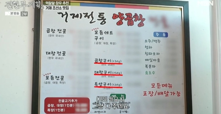🥩전현무계획2 거제도 곱창 거제전통양곱창전골 메뉴와 가격