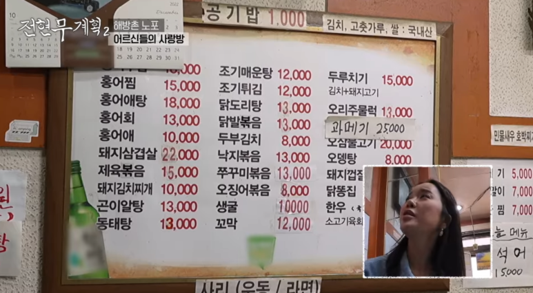전현무와 백지영이 먹은 김치 돼지 두루치기는 15,000원이며, 공기밥은 별도다 해방촌 고창집은 할머니의 전라도 손맛으로 만든 집밥 느낌의 반찬들도 푸짐하게 차려졌는데 반찬 그릇들은 마치 할머니집에서 볼 법한 접시들로 구성되어 있어 더 정겨운 느낌을 준다
