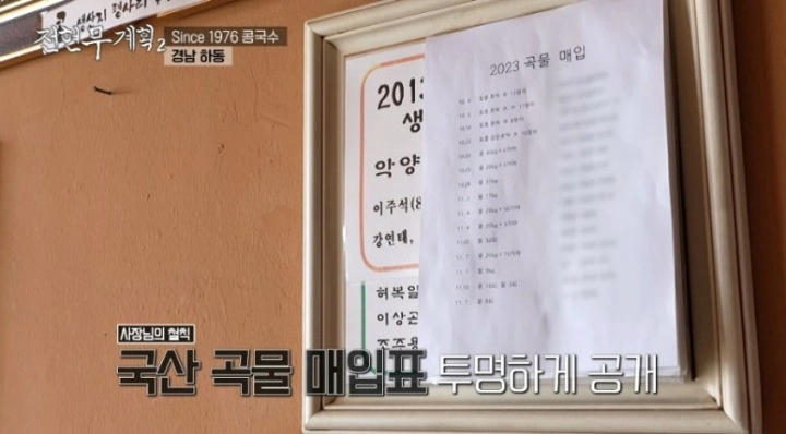 벽에 국산 곡물 매입표가 생산지, 생산자,