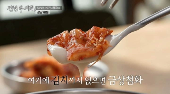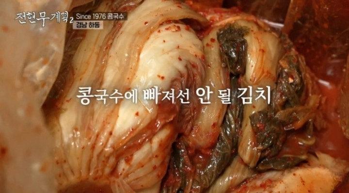 고소한 콩국수의 맛을 김치가 완성시켜줍니다.