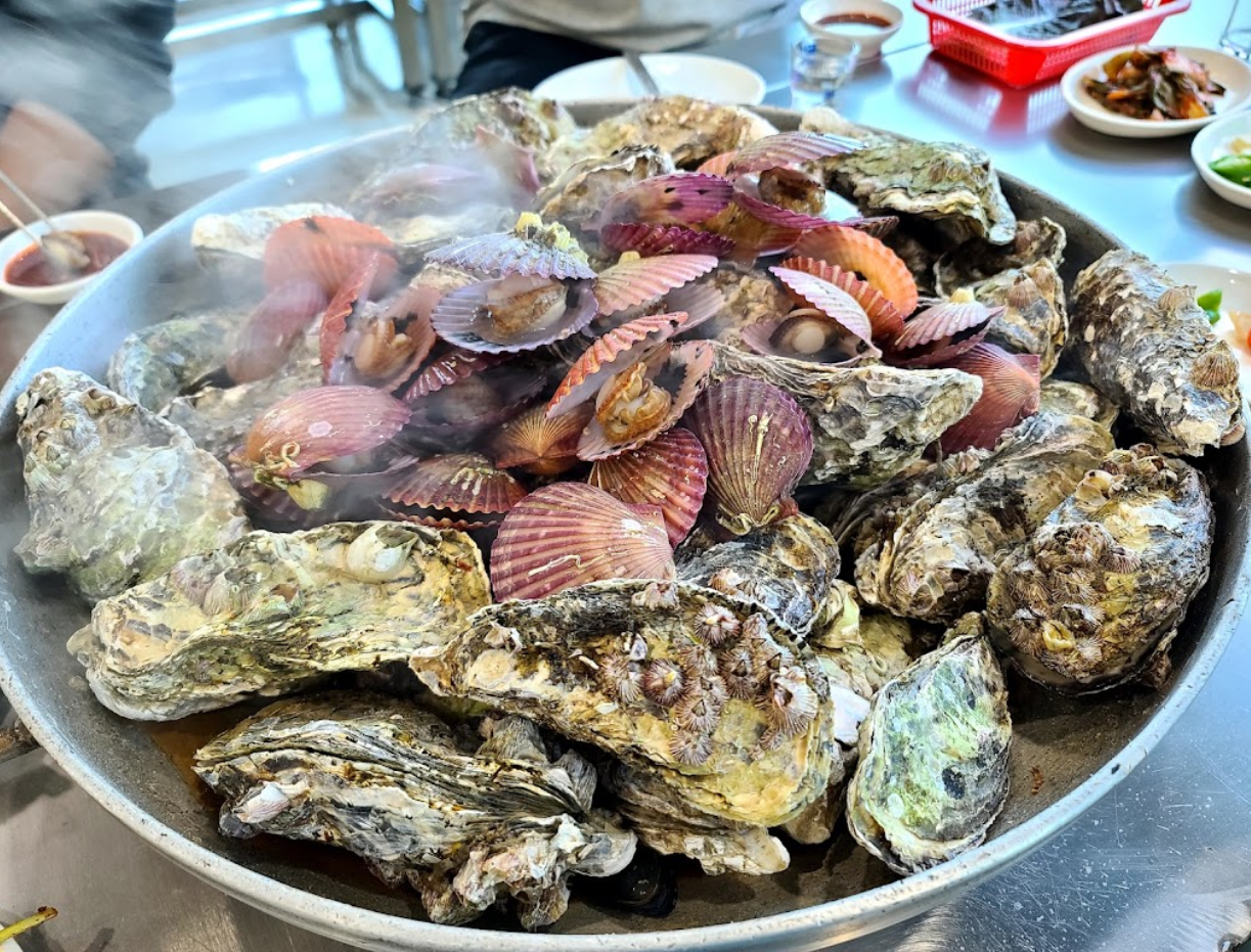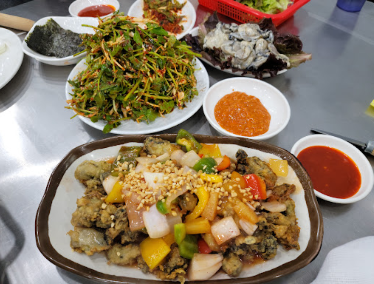 굴구이, 가리비, 굴탕수육, 미나리무침, 굴튀김, 굴죽! 알찬 구성으로 굴 한상이 나옵니다. 쫄깃하면서 부드럽고 탱탱한 굴을 한 입에 가득! 바다의 우유, 굴을 배 터지게 먹을 수 있는 곳으로 추천 꾹!!~