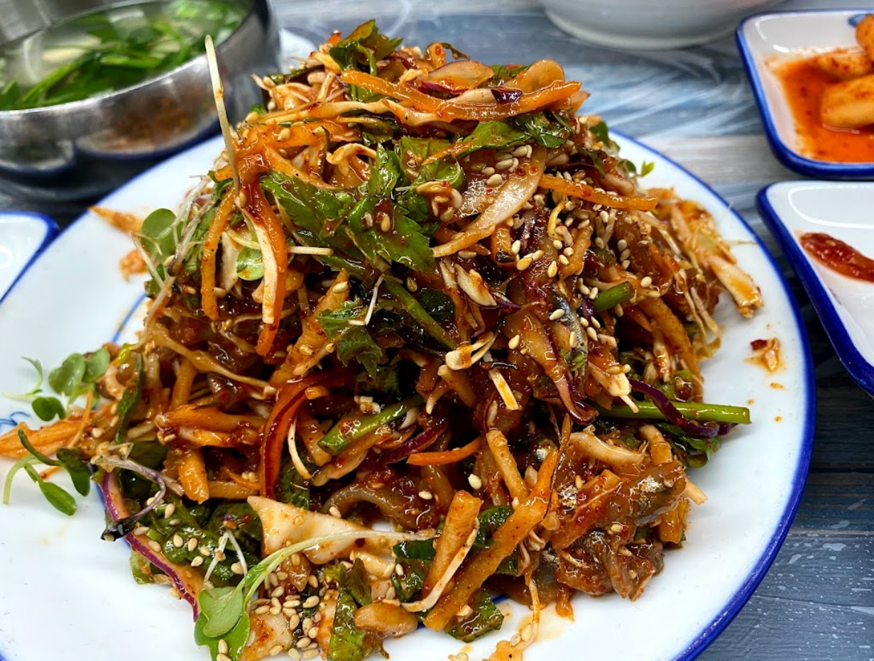수요미식회에도 소개되어 많은 관광객들이 찾는 인기 맛집인데요. 시원하고 깔끔한 국물에 아삭한 미나리, 숙주의 식감도 완벽!! 부들부들한 복은 초장에 찍어서 그냥~ 함께 나오는 새콤매콤한 멸치회무침을 비롯해 정갈한 반찬도 놓치지 말고 드셔야 합니다!~
