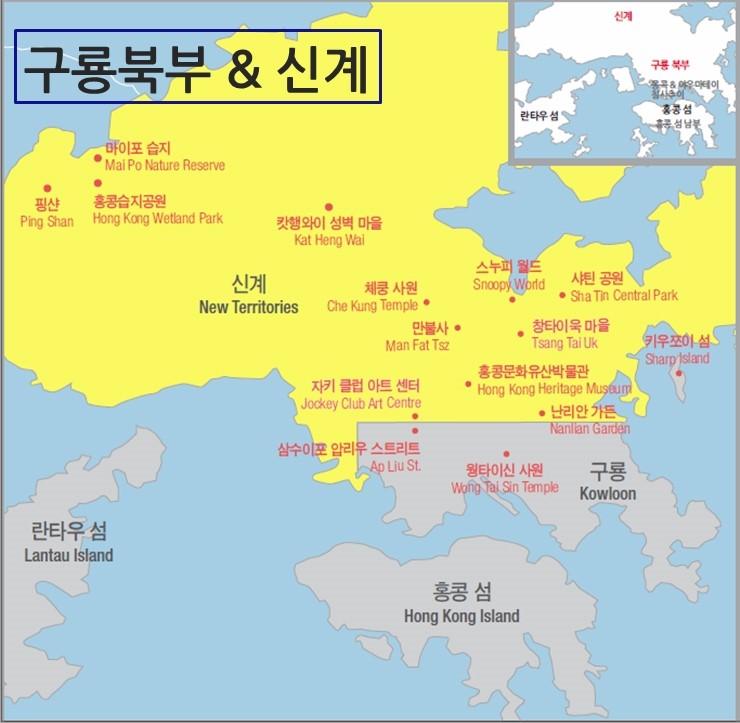그럼 오늘은 홍콩지도를 보고 홍콩의 주요관광지가 어디에 있는지 차근차근히 알려드릴게요. 지도를 보시면 홍콩여행 루트를 짜는데도 도움이 되실겁니다. 홍콩은 크게 구룡반도 와 홍콩섬, 란타우섬 으로 나뉩니다. 지역마다 특징이 뚜렷해 한 나라를 여행하게 되지만 모든 장면이 순간순간 새롭게 느껴질 정도로 특별한 차이를 보이게 됩니다.