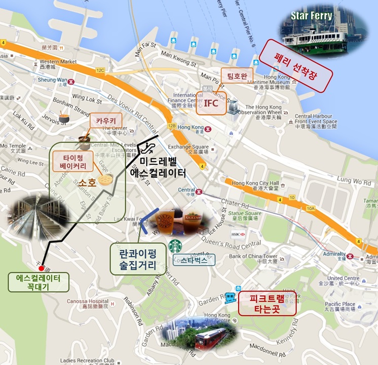 추천코스 : 셩완역 - 웨스턴마켓 - 캣스트리트(골동품거리) - 만모사원 - 할리우드로드 - 소호 & 란콰이퐁 - 더들스트리트 (스타벅스 콘셉트 스토어) - 홍콩성요한성당 - 홍콩공원 - 디기박물관 - 빅토리아피크