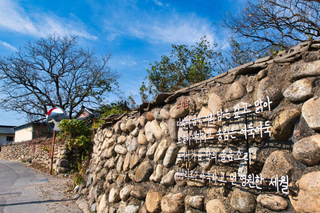 드라마 의 촬영지로 유명한 스팟으로 돌담을 따라 전통 집들이 모여 있고 뒤로는 설악산이 보이는 곳입니다.